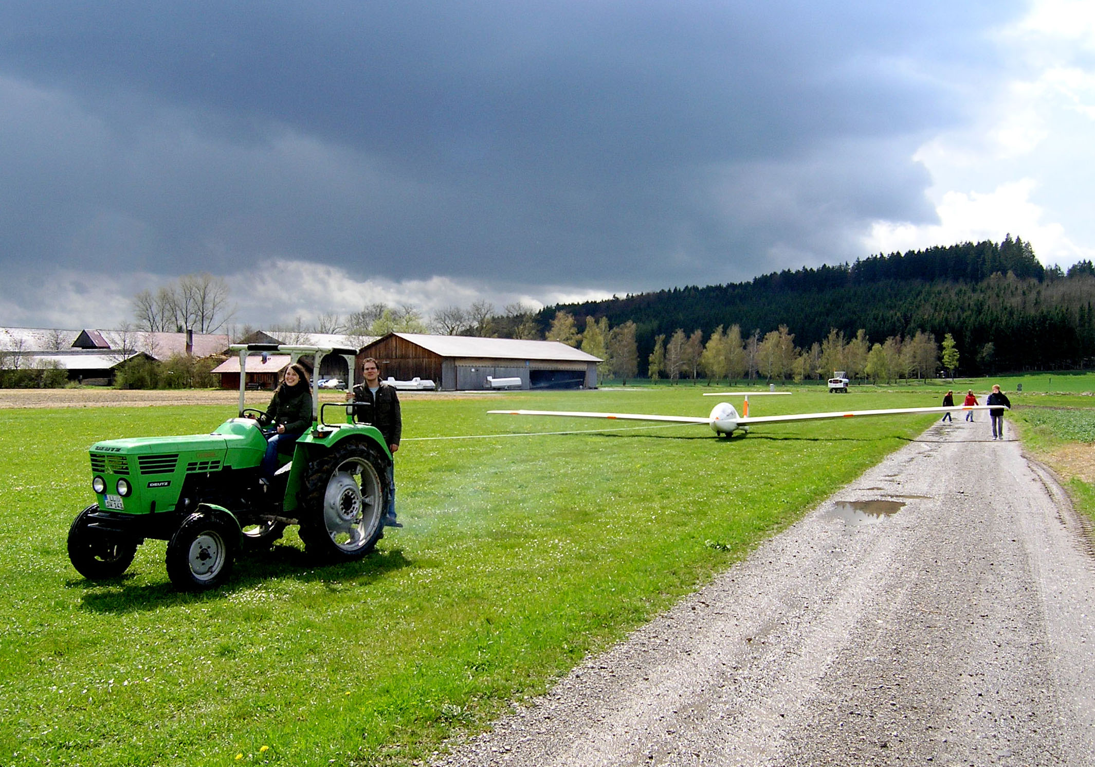 | Traktor: Er wird zum Zurückschleppen gelandeter Segelflugzeuge und für diverse andere Zwecke genutzt. Er darf auf dem Flugplatz ebenfalls bereits ab 14 Jahren gefahren werden. |