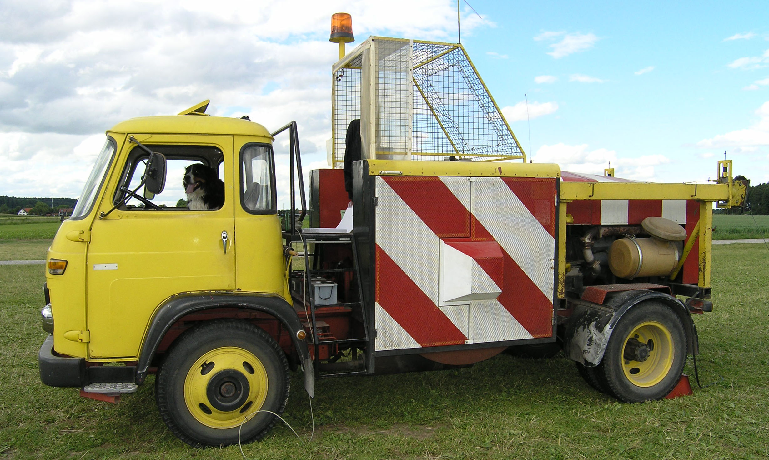 | Startwagen: Unser rollender Tower. Er steht immer am Segelflugstart und ist Platz des Flug- und Startleiters, der von dort den Flugbetrieb koordiniert und die Starts und Landungen dokumentiert. |