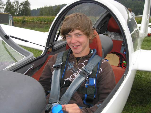 Der Boom beim Segelfliegernachwuchs am Geratshof hält an: seit dem Sommercamp freut sich der LSV mit Nick Hibler aus Weil über seinen zur Zeit 23. Flugschüler. Nick ist 14 Jahre alt und kann nach seinen ersten 4 Wochen bereits über 20 Starts im Doppelsitzer mit Fluglehrer verbuchen. Dank des guten Wetters der letzten Zeit gab's für ihn auch schon einige längere Flüge mit guter Thermik. Auf die Frage, warum er fliegt, antwortet Nick: "Weil's einfach genial ist, die Freiheit da oben zu erleben und bei der super Aussicht vom Alltag abzuschalten". Das Flugschülerteam wird am Geratshof zur Zeit von 7 ehrenamtlichen Fluglehrern betreut, ein weiterer Fluglehrer ist mittlerweile in Ausbildung und wird die Fluglehrermannschaft ab 2010 verstärken. je  Nick Hibler im Twin 3 vor dem Start
