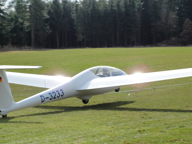 wenn nicht, landet er auf einem Acker, oder einer Wiese, Segelflugzeuge