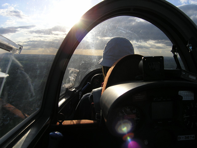 Teil der Segelflugausbildung direkt vom Pilotensitz aus mit Fluglehrer