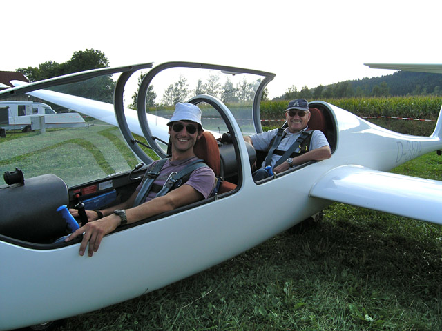 Tag 3 - 07.09.: einfach nur Sommer! Heute gab's - wieder einmal bei perfekter Fernsicht - mittelstarke Blauthermik unter einem tollen Sommerhimmel. Alle Vereinsflieger tummelten sich bei angenehmen Spätsommertemperaturen fleißig über den Hügeln des Alpenvorlandes. Und abends verwöhnte uns Pierre mit seinem berüchtigten Thai Wok. je