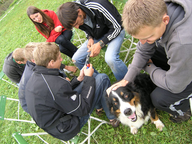 Tag 8 - 12.09.: 3 x Feiern! Trotz eher herbstlich kühlen Wetters waren gestern große Erfolge zu feiern: Karl und Michi - beide 14 Jahre alt - durften einen der großen Momente in der Segelfliegerlaufbahn erleben und das erste Mal alleine fliegen. "Ein bißchen mulmig war's uns vor dem Start schon - nach der Landung war es aber einfach nur irre", berichteten beide einhellig. Felix konnte seinen ersten LS-4 Flug genießen. Die Ergebnisse wurden bei den Alleinfliegern mit der traditionellen "Senisbilisierung" des Hinterteils und einem fröhlichen Abend in der randvollen Vereinshütte gefeiert. je Fotos des Tages: "Abschlusstaufe" der Alleinflieger