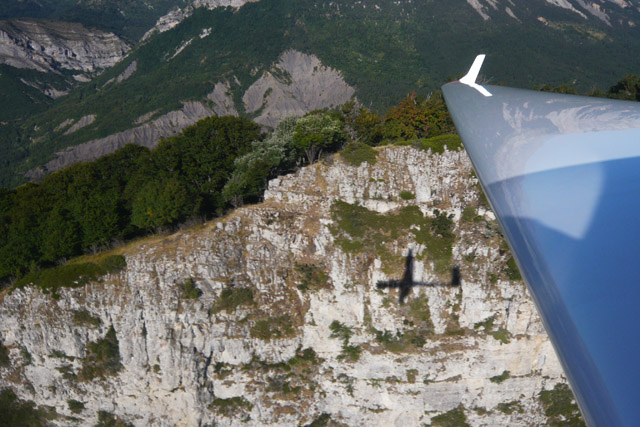 "Schatten jagen" entlang der schroffen Kalkstein-Felsrinnen der Provence Lautlos ging’s in den mächtigen Aufwinden der Seealpen über die Gletscher der Barre des Ecrins bis hin zu Montblanc und Matterhorn. Den krönenden Abschluss bildete eine Wellenwetterlage, die die Segelflieger in erfrischende Höhen bis 6000 m trug. Dazwischen gab’s regelmäßig entspannte Bade- und Wanderausflüge in die einzigartige Natur der umliegenden Berge, Seen und Schluchten. Fazit: Saint Auban 2009 – ein echt gechillter Hammer!! je