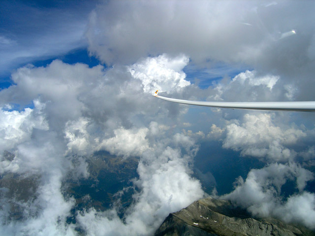 Thermik in über 4000 m NN am Aiguille der Chamberon In 4400 m NN zwischen den Wolken am Monte Viso